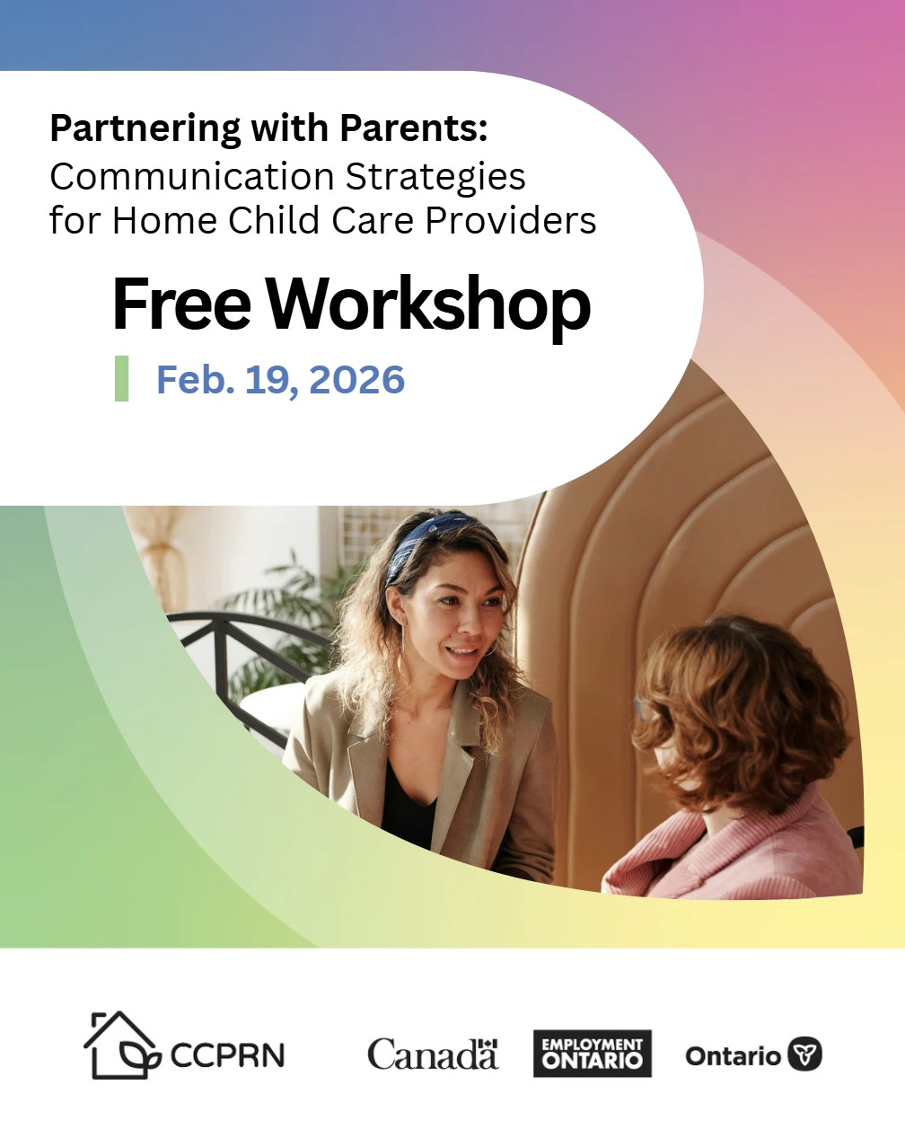 *This workshop is exclusively for home child care providers.* Join Katie Bertrand, RECE and former home daycare provider, to discuss communication strategies and professional approaches when talking to parents about difficult or sensitive topics.